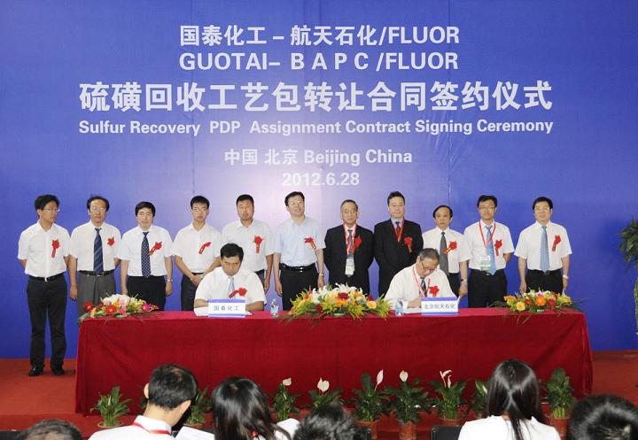 6月28日,北京航天石化與鄂爾多斯市國泰化工有限公司就美國福陸公司硫回收工藝包轉(zhuǎn)讓合同,進(jìn)行了簽約儀式,儀式在北京中國國際展覽中心舉行,《中國化工報》以專題報道的形式,在7月3日二版科技創(chuàng)新版面對簽約相關(guān)事項(xiàng)進(jìn)行了頭條刊登。